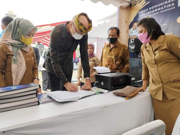 KENDARI – Duta besar luar biasa dan berkuasa penuh (dubes LBBP) Republik Ceko Jaroslav Dolecek, berkunjung ke stand pameran Dinas Komunikasi dan Informatika Provinsi Sulawesi Tenggara (Sultra), Selasa (8/2/2022)
